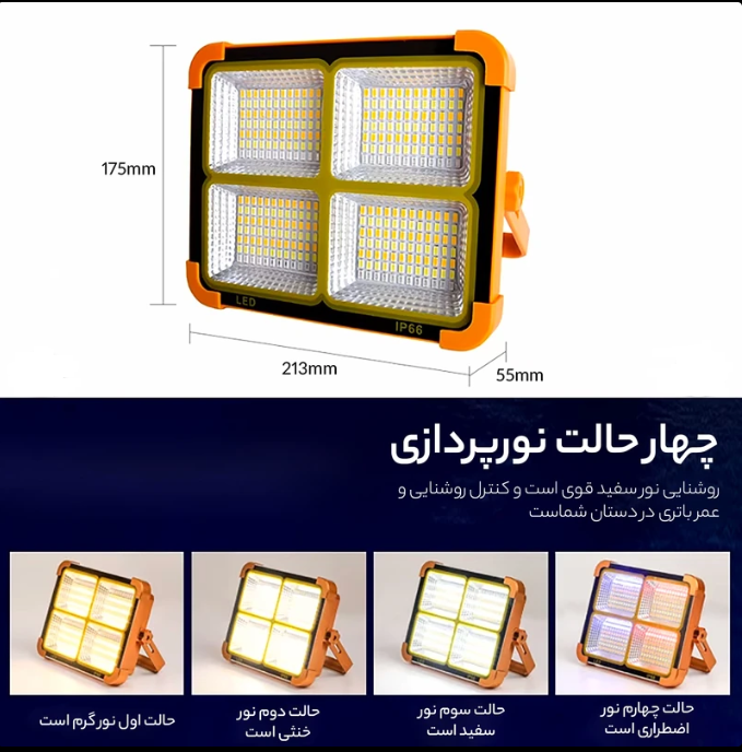 نورافکن دستی سولار خورشیدی مدل IP-66 کد 100X ISJ